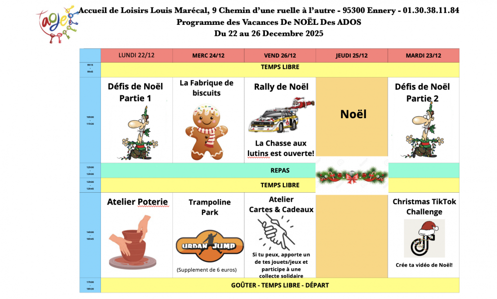 PROGRAMME DES VACANCES DE NOËL ADO